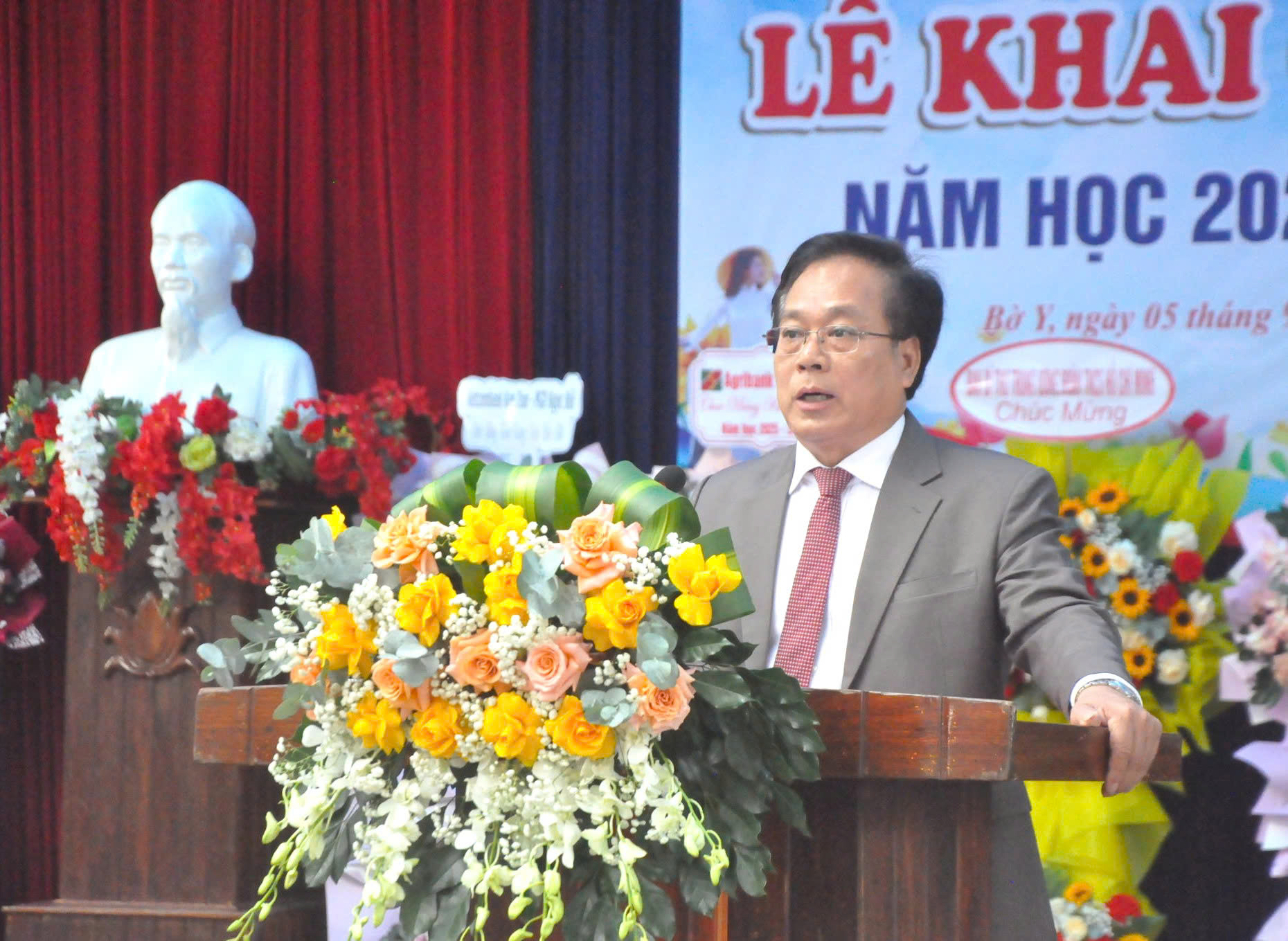 Tham dự buổi lễ đồng chí Xiêng Thanh Phúc, Giám đốc Sở Dân tộc và Tôn giáo tỉnh Quảng Ngãi, đồng chí Nguyễn Văn Mạnh - Phó Chủ tịch Uỷ ban Mặt trận Tổ quốc Việt Nam tỉnh, Bí thư Tỉnh đoàn Quảng Ngãi. Cùng dự có 90 Cán bộ, giáo viên, nhân viên nhà trường cùng 1445 em học sinh trong toàn trường.