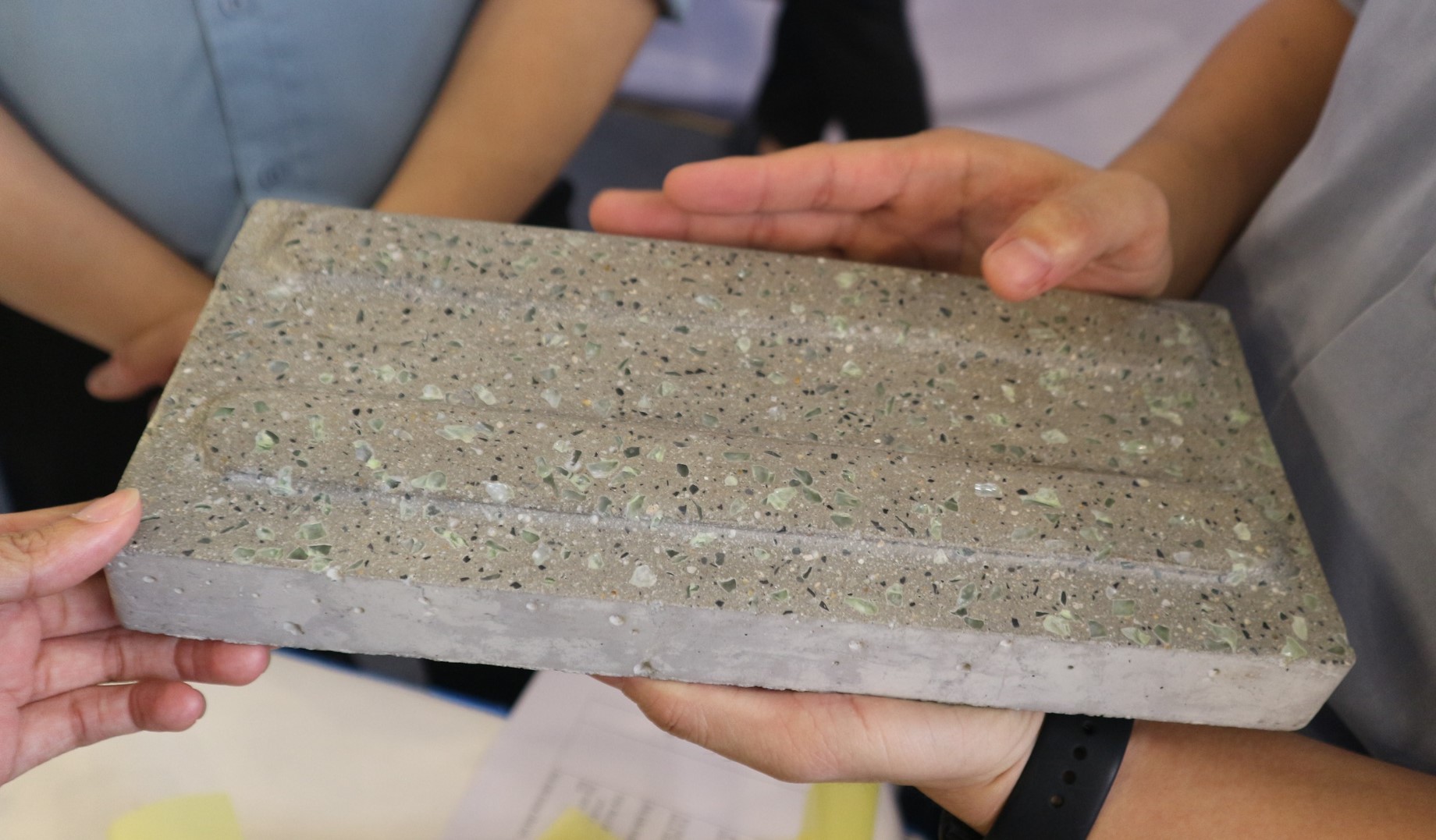 Dưới sự dẫn dắt của tiến sĩ Hà Minh Tuấn, Phó viện trưởng Viện Đào tạo Việt - Nhật, Trường Đại học Công nghệ thành phố Hồ Chí Minh, nhóm đã phát triển thành công gạch thủy tinh phát quang. Loại gạch này được tạo ra từ sự kết hợp giữa hạt xi măng đã thủy hóa và thủy tinh phát quang, thay thế cho cát trong xây dựng. Vữa gạch sử dụng thủy tinh tái chế từ rác thải cùng hạt xi măng đã thủy hóa từ các công trình cũ, không chỉ giúp tiết kiệm tài nguyên thiên nhiên mà còn giảm thiểu đáng kể tác động đến môi trường.