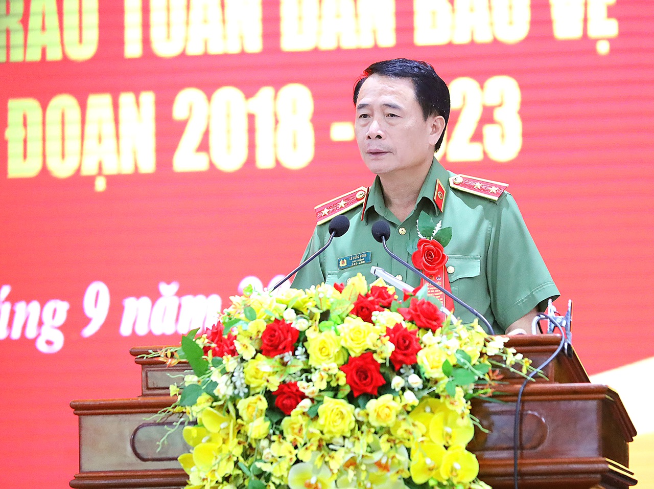 Trung tướng Lê Quốc Hùng, Ủy viên Trung ương Đảng, Thứ trưởng Bộ Công an phát biểu tổng kết hội nghị.