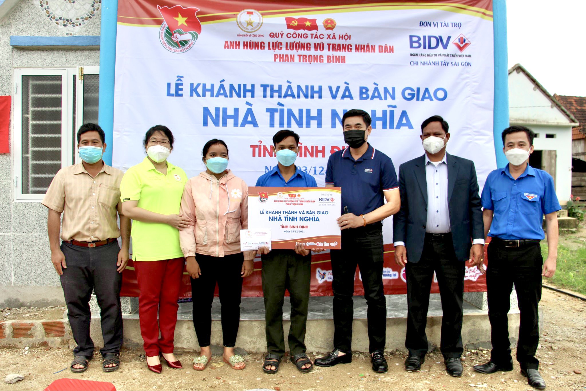 Nhằm hỗ trợ cho hộ gia đình chính sách, có công với cách mạng, có hoàn cảnh khó khăn, sáng ngày 03/12/2021, tại Làng 5, xã Vĩnh Thuận, huyện Vĩnh Thạnh, Ban Thường vụ Tỉnh đoàn phối hợp cùng Quỹ công tác xã hội Anh hùng Lực lượng vũ trang nhân dân Phan Trọng Bình và ngân hàng TMCP đầu tư và phát triển Việt Nam - BIDV Chi nhánh Tây Sài Gòn tổ chức buổi khánh thành Nhà tình nghĩa tặng gia đình anh Đinh Vơ - là hộ gia đình chính sách, có công với cách mạng, có hoàn cảnh khó khăn.