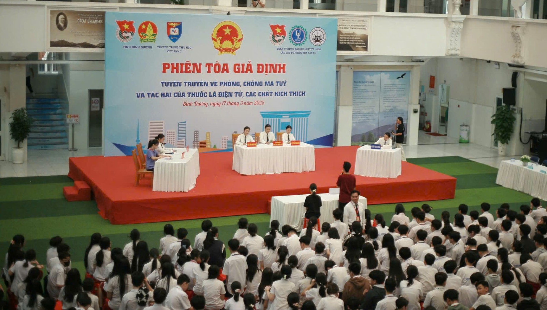 Tham dự chương trình có đồng chí Lê Tuấn Anh, Phó Bí thư thường trực Tỉnh đoàn, Chủ tịch Hội đồng Đội tỉnh; đại diện lãnh đạo Sở Tư pháp tỉnh; thầy Huỳnh Văn Tuấn, Hiệu trưởng Trường Trung Tiểu học Việt Anh 3; cùng sự tham gia của các thầy cô và gần 1.000 học sinh THCS, THPT tại trường.