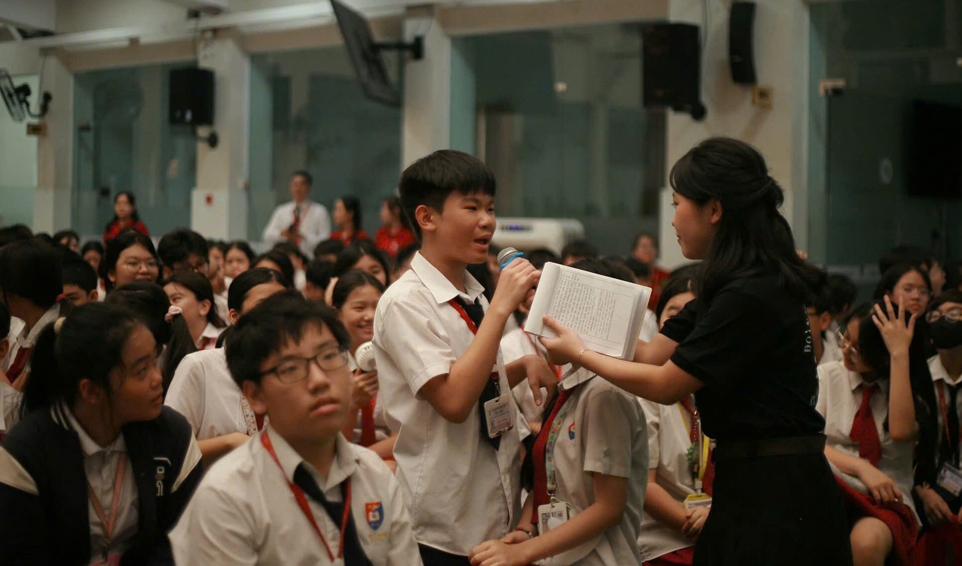 Các em học sinh trường Trung Tiểu học Việt Anh 3 trả lời câu hỏi tại chương trình