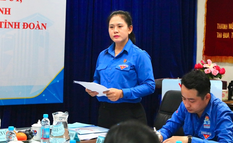 Bí thư Tỉnh đoàn Trần Thị Diễm Trinh báo cáo tóm tắt công tác Đoàn - Hội và phong trào thanh thiếu nhi tỉnh Bình dương 8 tháng đầu năm 2023