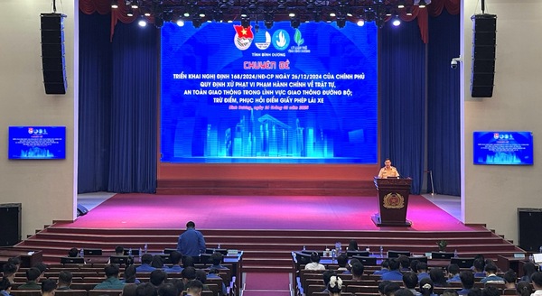 Thượng úy Phạm Tiến Đức, Phó Bí thư Chi đoàn, cán bộ phòng Cảnh sát giao thông, Công an tỉnh Bình Dương giới thiệu chuyên đề về Nghị định 168/2024/NĐ-CP, cập nhật những điểm mới trong quy định xử phạt vi phạm hành chính trong lĩnh vực giao thông đường bộ. Chuyên đề giúp đoàn viên, thanh niên hiểu rõ hơn về quyền và trách nhiệm của mình trong việc xây dựng văn hóa giao thông an toàn, với mục tiêu nâng cao ý thức chấp hành giao thông và góp phần giảm thiểu tai nạn, hướng tới một xã hội giao thông văn minh, an toàn.