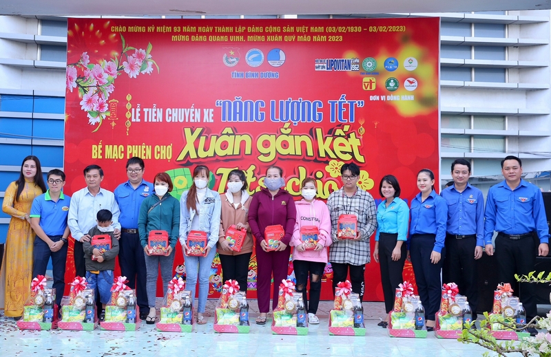 Tặng quà cho 240 thanh niên công nhân, lao động trẻ, sinh viên về quê đón Tết