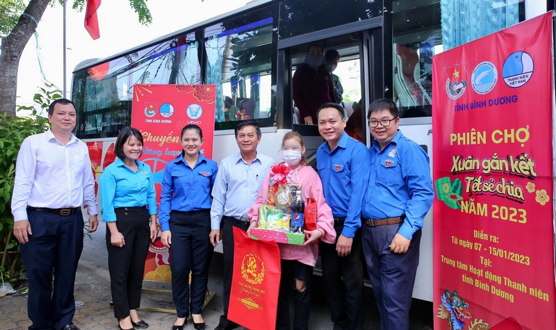 Chuyến xe “Năng lượng Tết 2023” đưa 240 anh chị thanh niên công nhân, lao động trẻ, sinh viên về quê đón Tết đã chính thức lăn bánh vào lúc 07g30, hành trình di chuyển từ Bình Dương về các tỉnh Cà Mau, Bình Định, Phú Yên, Quảng Nam.