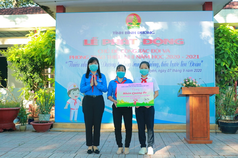 Nhân dịp Lễ khai giảng, Hội đồng Đội Trung ương đã trao tặng 01 bộ trống Đội, 2 tủ sách Kim Đồng, 100 phần quà; 150 suất học bổng và quà tặng trị giá gần 150 triệu đồng; Ban Thường vụ Tỉnh Đoàn, Hội đồng Đội tỉnh đã trao tặng 1.500 cuốn tập trắng, 500 quyển sách “Thiếu nhi Bình Dương lớn lên cùng đất nước”, 20 suất học bổng trị giá gần 35.000.000 đồng cho các Liên đội được chọn khai giảng điểm cấp tỉnh.