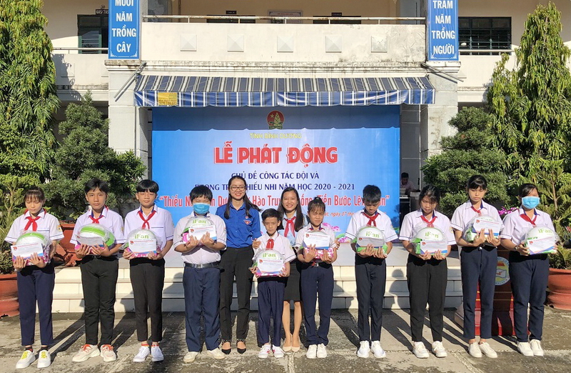 Tại trường Tiểu học Phú Hòa 1 (TP. Thủ Dầu Một), đồng chí Trần Thị Diễm Trinh, Phó Bí thư Tỉnh Đoàn, Chủ tịch Hội Sinh viên Tỉnh đã trao các phần quà và học bổng “Tiếp sức đến trường” và công trình măng non cho đội viên, thiếu nhi của trường cho đội viên, thiếu nhi của trường nhân dịp năm học mới.