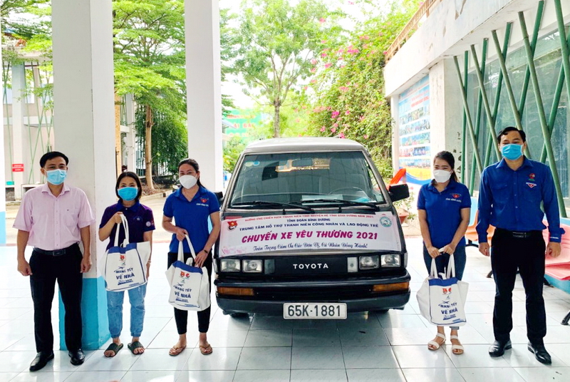 BTV Tỉnh đoàn cũng thành lập Đội xe tình nguyện phòng, chống dịch Covid-19” vận chuyển khẩu trang y tế cho Ban Chỉ huy Đội hình chống dịch Tỉnh đoàn; hỗ trợ 6 xe vận chuyển 4.000 hộp sữa của mạnh thường quân từ huyện Dầu Tiếng về TP. Thủ Dầu Một; hỗ trợ 7 xe vận chuyển nhu yếu phẩm từ Nhà Thiếu nhi tỉnh đến phường Bình Hoà, TP. Thuận An; hỗ trợ 3 xe vận chuyển 1 tấn gạo đến Dầu Tiếng; hỗ trợ 2 xe vận chuyển rau, củ, quả tặng tại phường Bình Chuẩn, Thuận An; các thành viên Đội xe tình nguyện TNXP tặng 30 phần quà cho TNCN tại khu nhà ở xã hội Định Hoà, TP. Thủ Dầu Một.