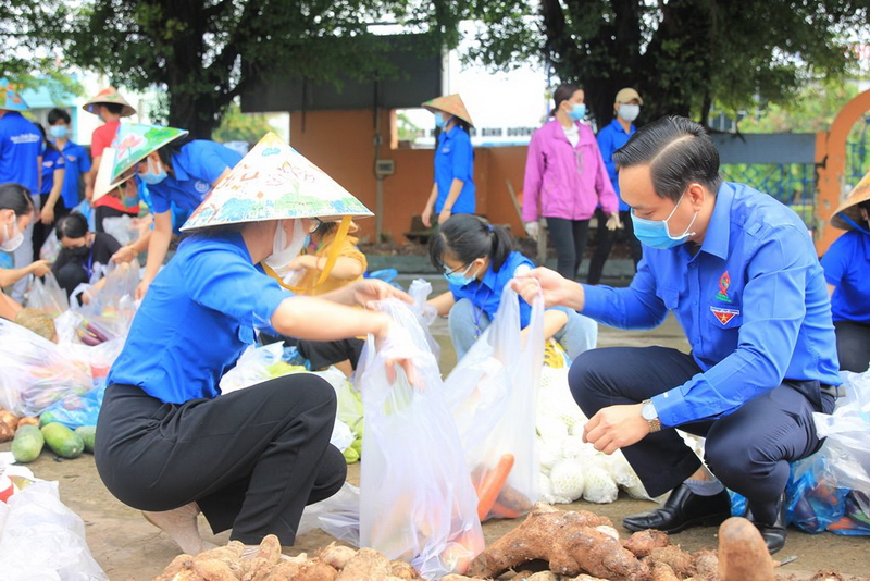 Tặng rau, củ, quả hỗ trợ thanh niên công nhân