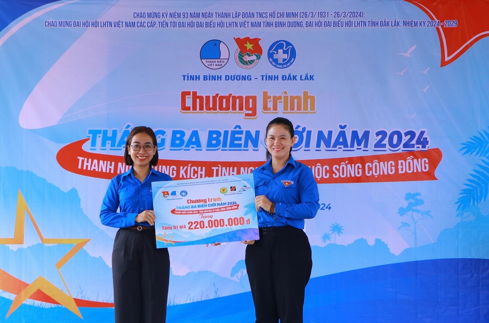 Tại chương trình, Tỉnh đoàn Bình Dương đã trao bảng tượng trưng các công trình, phần việc tại Đắk Lắk với tổng giá trị 220 triệu đồng gồm: 20 suất học bổng tặng trẻ em có hoàn cảnh khó khăn tổng trị giá 20 triệu đồng; trao 10 phần quà nhu yếu phẩm tặng người dân khó khăn tổng trị giá 5 triệu đồng; tổ chức khám bệnh, phát thuốc và trao tặng quà với số lượng 200 suất tổng trị giá 100 triệu đồng; tổ chức gian hàng áo ấm 0 đồng cho thanh thiếu nhi là người dân tộc thiểu số có hoàn cảnh khó khăn.