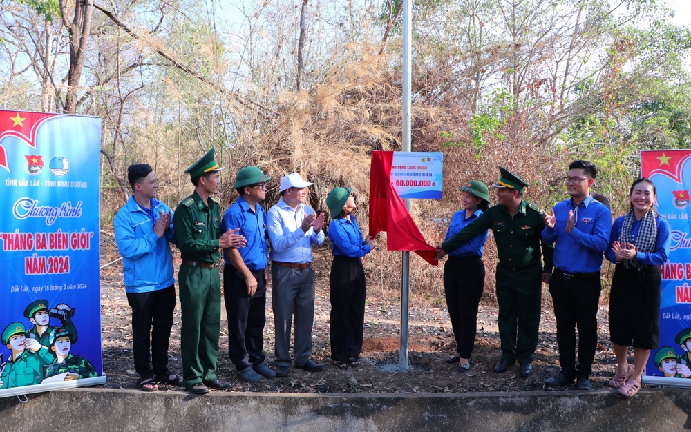 Bên cạnh đó, Tỉnh đoàn Bình Dương đã trao tặng 30 bản đồ Việt Nam hưởng ứng cuộc vận động “Tự hào một dải non sông” và trao 5 phần quà tặng các chiến sĩ đồn biên phòng.