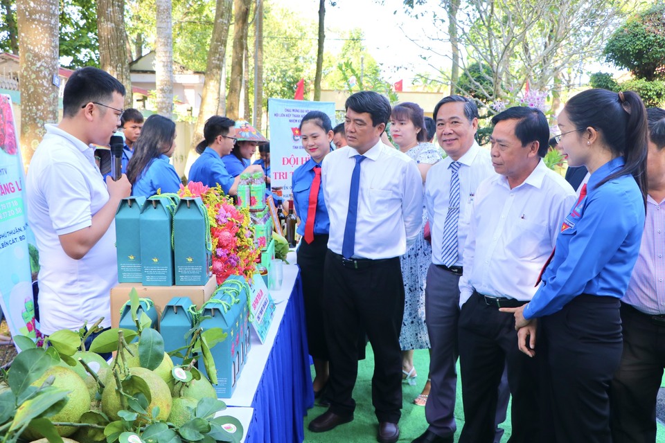 Đại biểu tham quan triển lãm các sản phẩm, mô hình phát triển kinh tế của thanh niên nông thôn sản xuất kinh doanh giỏi