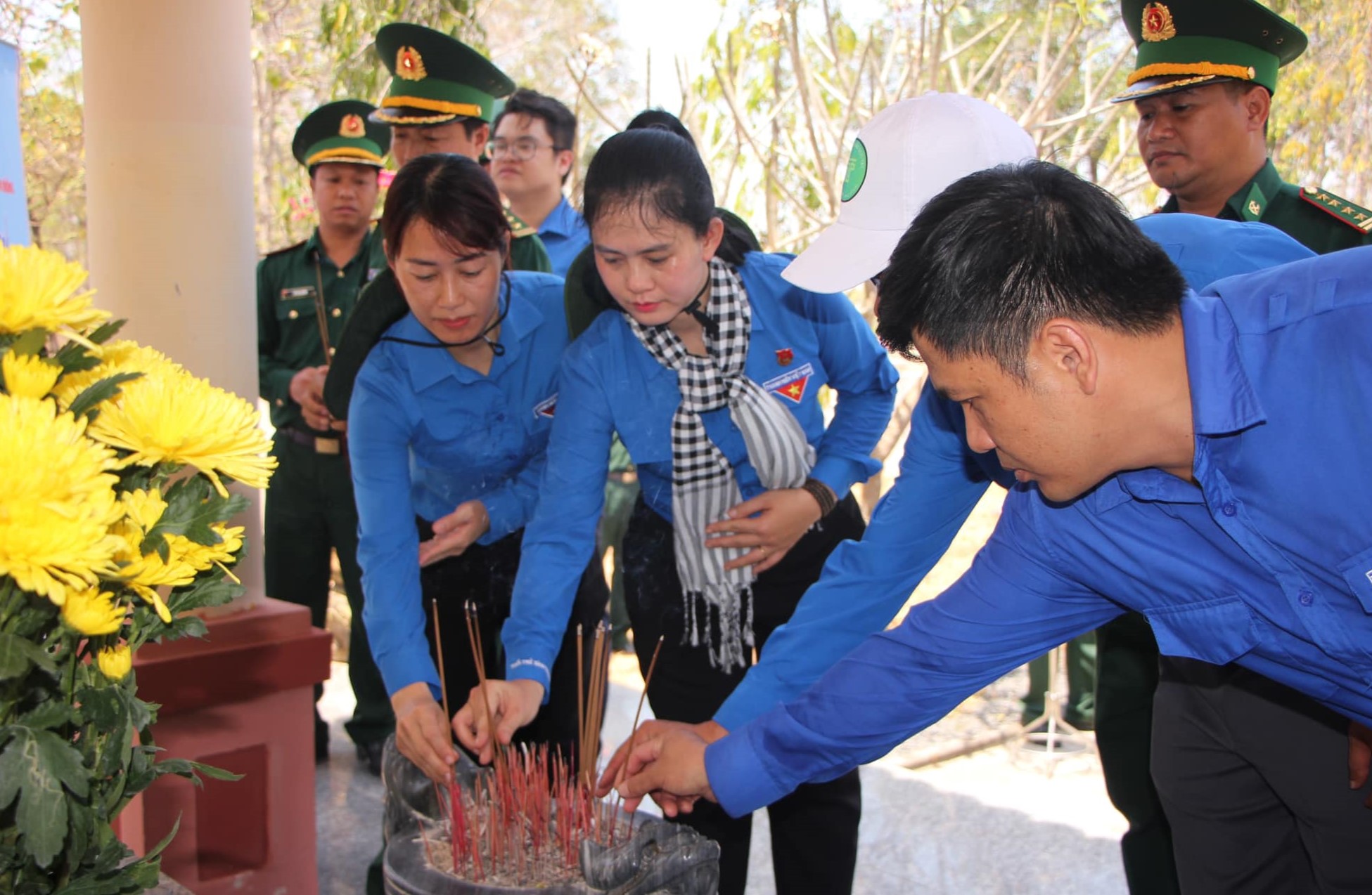 Đoàn công tác dâng hương tại bia tưởng niệm các anh hùng liệt sĩ tại khu vực đồn 735