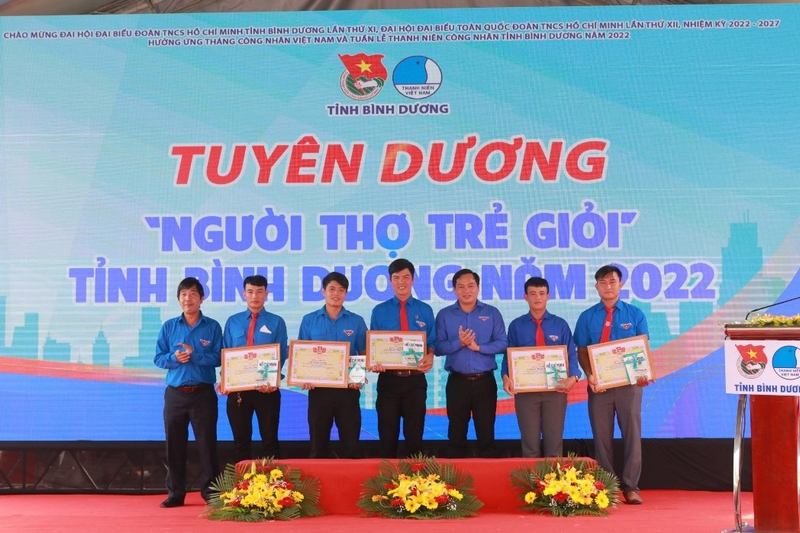 Đồng thời, Ban Thường vụ Tỉnh đoàn tổ chức tuyên dương 05 gương “Người thợ trẻ giỏi” tỉnh Bình Dương năm 2022, trong đó có 01 gương “Người thợ trẻ giỏi” cấp Trung ương; tuyên dương 21 cán bộ, công chức, viên chức trẻ giỏi tỉnh Bình Dương năm 2022; tuyên dương 15 Bí thư Chi đoàn, Chi hội trưởng, Chủ nhiệm các Câu lạc bộ, đội nhóm thanh niên công nhân tiêu biểu trên địa bàn tỉnh Bình Dương.