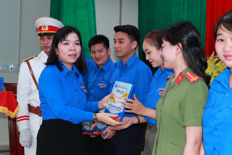 Đồng chí Nguyễn Thị Ngọc Xuân - Bí thư Tỉnh đoàn trao lịch cho các đơn vị