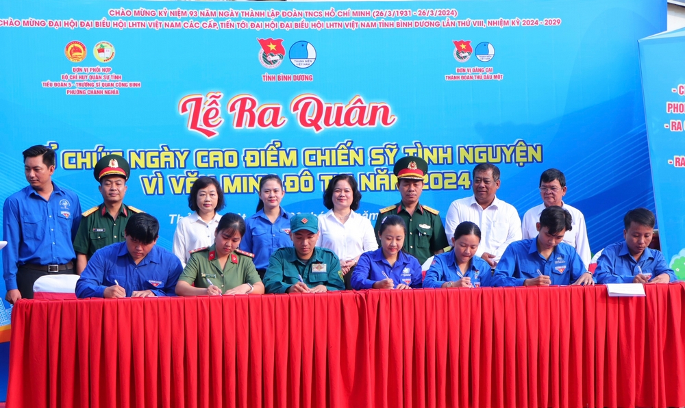 Tại buổi lễ, Đoàn Thanh niên 14 phường, Đoàn Thanh niên Công an thành phố, Đoàn Thanh niên Ban chỉ huy quân sự thành phố đã tiến hành ký cam kết về việc “Đảm bảo tổ chức hoạt động tham gia xây dựng văn minh đô thị” tại các phường trên địa bàn năm 2024.
