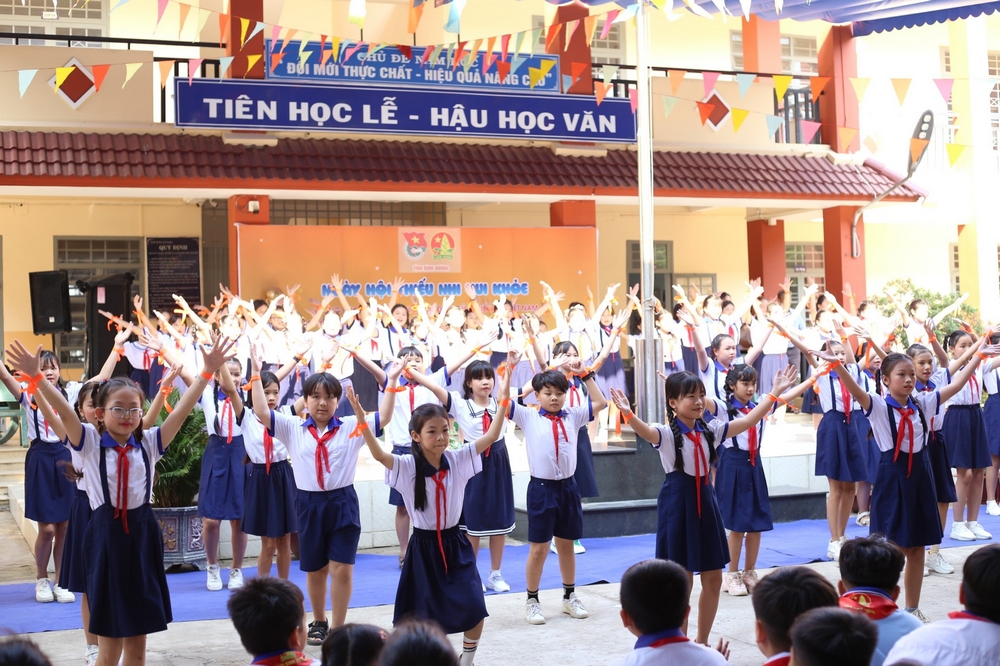Hình 5: Đồng diễn sân trường ca khúc “Tự hào Thiếu nhi Việt Nam và Kun