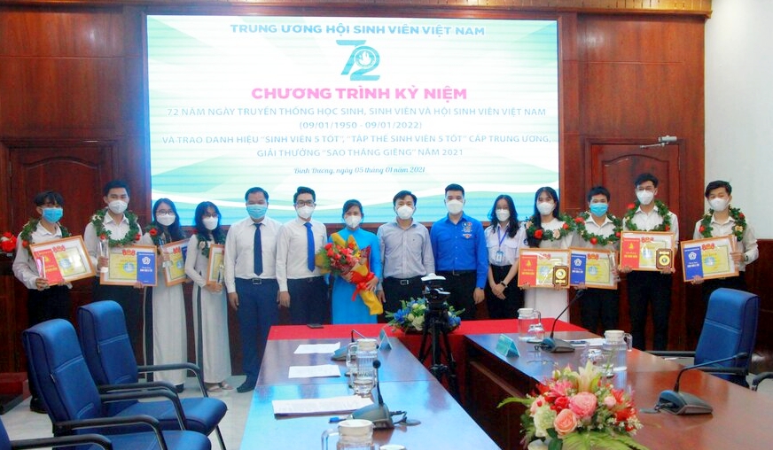 ĐTN: Sáng 05/01, Hội SVVN tỉnh Bình Dương tổ chức chương trình tuyên dương, trao danh hiệu “Sinh viên 5 tốt”, “Tập thể Sinh viên 5 tốt” cấp Trung ương và Giải thưởng “Sao Tháng Giêng” cho 11 cá nhân và 01 tập thể có thành tích xuất sắc trong học tập, rèn luyện năm học 2020 - 2021.
