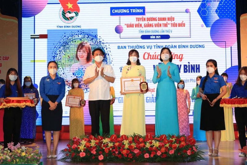 Tại chương trình đã xem phóng sự về Gương “Giáo viên, giảng viên trẻ tiêu biểu” tỉnh Bình Dương năm 2021 và trao giấy khen cùng quà lưu niệm cho 116 giáo viên xuất sắc trong công tác chuyên môn và đã đạt được danh hiệu trong cải tiến phương pháp giảng dạy, góp phần nâng cao chất lượng giáo dục của địa phương và toàn tỉnh.