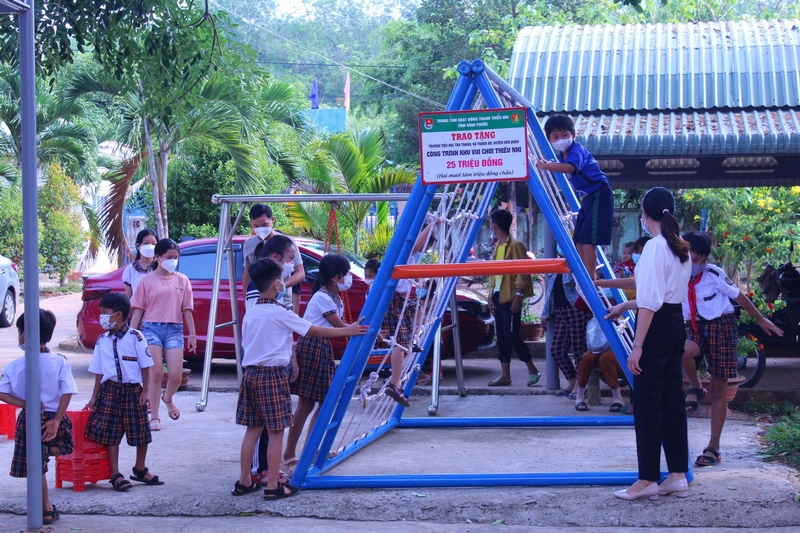 Khu vui chơi thiếu nhi gồm 5 hạng mục: xích đu, thang leo, sân chơi cầu lông, bóng đá, bóng rổ với tổng trị giá 25 triệu đồng do cán bộ, nhân viên Trung tâm Hoạt động thanh thiếu nhi tỉnh tự thực hiện và đầu tư kinh phí.