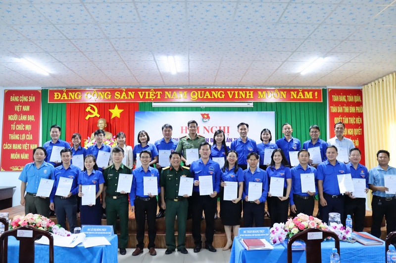 Đồng chí Trần Hoàng Trực - Bí thư Tỉnh Đoàn, Chủ tịch Hội LHTN Việt Nam tỉnh và đồng chí Lê Thị Hồng Phấn- Phó Bí thư Tỉnh Đoàn, Chủ nhiệm Ủy Ban Kiểm tra Tỉnh Đoàn, Chủ tịch Hội đồng Đội tỉnh trao tặng thư cảm ơn cho các đơn vị tại Hội nghị.