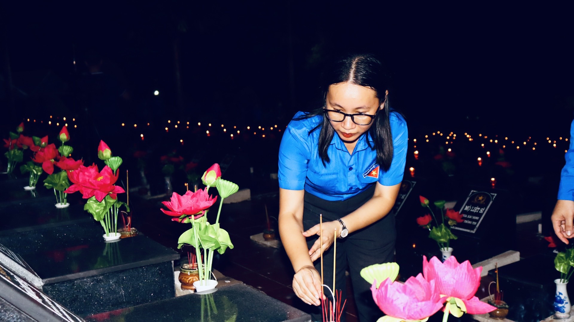 Tại buổi Lễ, các đồng chí lãnh đạo các sở, ban, ngành, đoàn thể và các bạn đoàn viên, thanh niên đã dâng hoa, dâng hương tưởng nhớ anh linh các anh hùng liệt sĩ; thắp lên những nén hương, những ngọn nến tri ân ở các phần mộ là nơi an nghỉ của gần 5000 anh hùng liệt sĩ.