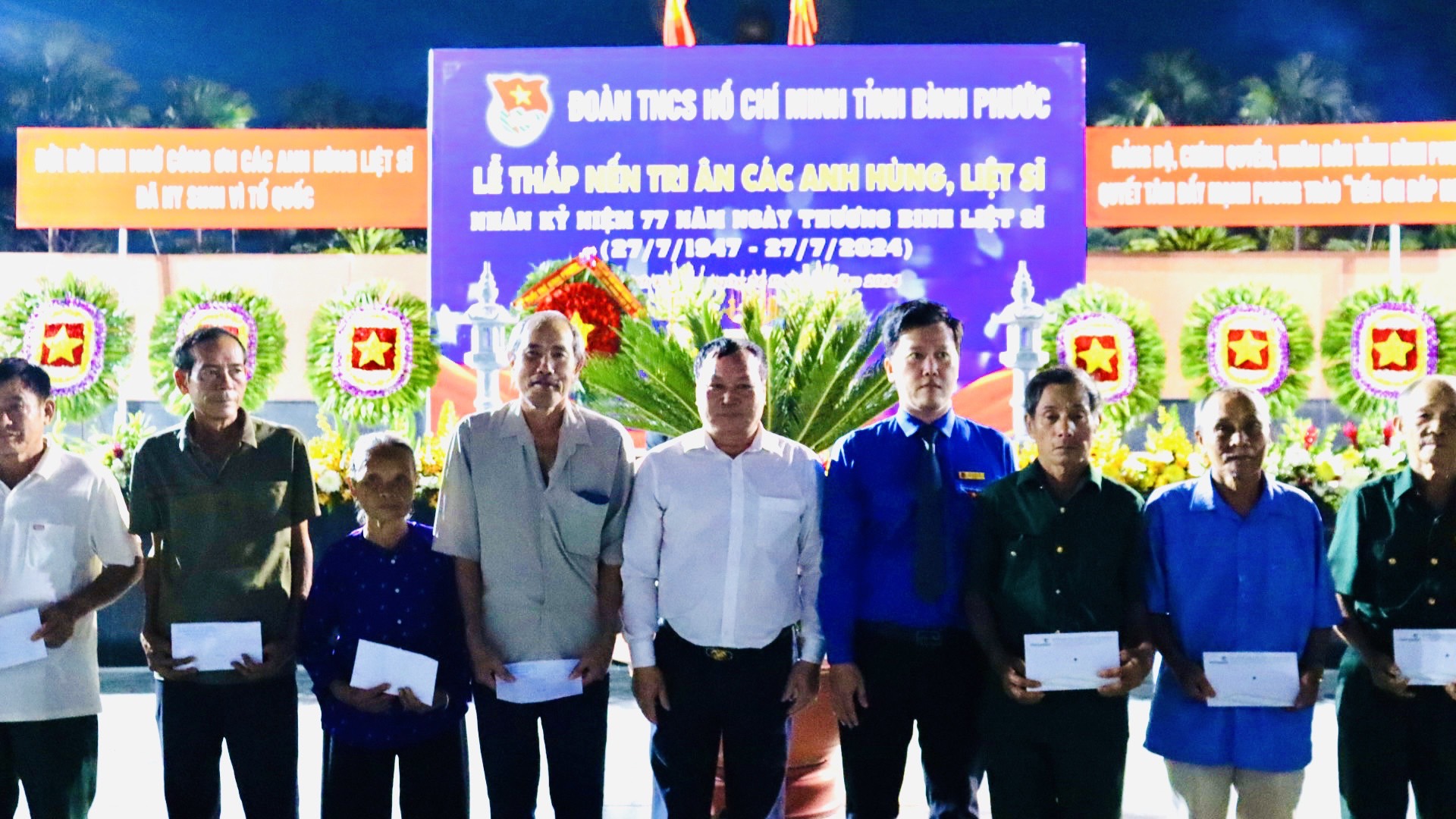 Trong ngày 26/7/2024, tuổi trẻ Bình Phước đã đồng loạt tổ chức Lễ thắp nến tri ân các anh hùng liệt sĩ tại các nghĩa trang, đài tưởng niệm trên toàn tỉnh. Lễ thắp nến tri ân các anh hùng liệt sĩ là hoạt động thường niên, thể hiện truyền thống “Uống nước nhớ nguồn”, “Đền ơn đáp nghĩa” của dân tộc, lòng biết ơn của tuổi trẻ Bình Phước đối với thế hệ cha anh đã hy sinh vì sự nghiệp xây dựng và bảo vệ Tổ quốc.