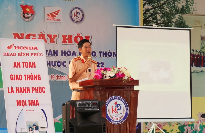 Tại chương trình, Trung tá Nguyễn Trung An - Đội trưởng đội xử lý hành chính, phòng Cảnh sát giao thông Công an tỉnh đã cung cấp cho giáo viên và các em học sinh một số thông tin về tình hình trật tự an toàn giao thông trên địa bàn tỉnh trong thời gian qua, giúp các em nắm thêm các quy định mới của pháp luật khi tham gia giao thông, các mức xử phạt đối với các lỗi vi phạm như điều khiển xe vượt tốc độ quy định, quy định về độ tuổi lái xe…