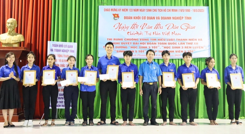 Dịp này, Ban tổ chức đã trao giải cho các tập thể, cá nhân đạt kết quả cao tại các phần thi, trò chơi dân gian. Đồng thời Tỉnh Đoàn đã chỉ đạo Đoàn khối Cơ quan và Doanh nghiệp tỉnh phát động 100% sinh viên tham gia hội thi “Olympic các môn khoa học Mác - Lê Nin và tư tưởng Hồ Chí Minh - Ánh sáng soi đường năm 2023”. Qua đó, giúp các em nâng cao nhận thức chính trị, bồi dưỡng lý tưởng cách mạng từ đó vận dụng vào học tập, công tác và rèn luyện bản thân./.