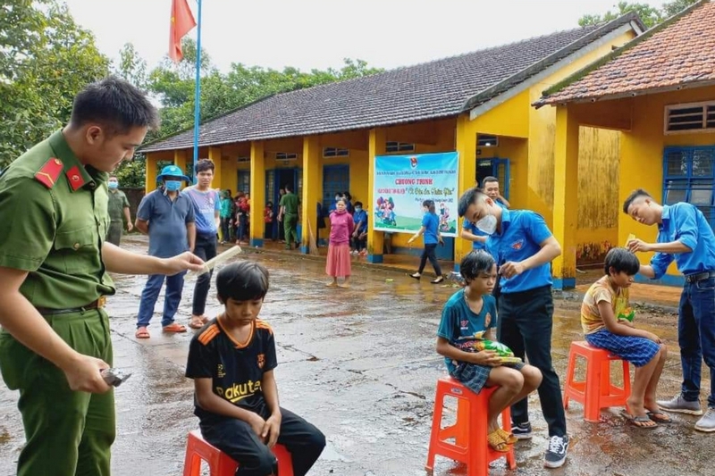 Cắt tóc miễn phí cho học sinh tại huyện Bù Gia Mập