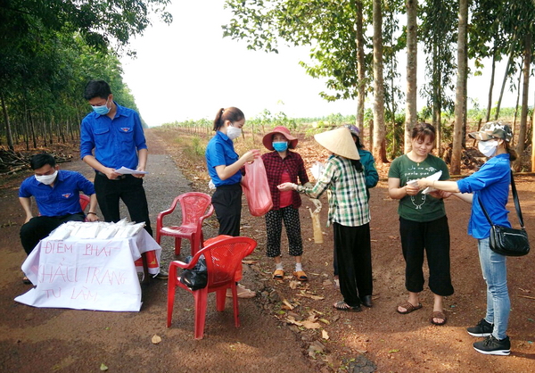 Tiêu biểu có Đoàn Thanh niên Công an tỉnh đã tổ chức 04 đợt tuyên truyền thu hút hơn 01 nghìn công nhân và nhân dân tham gia, phát hơn 2 nghìn tờ rơi, gần 9 nghìn khẩu trang tại các khu công nghiệp, khu đông dân cư…; Đoàn Thanh niên Công ty TNTH MTV Cao su Bình Long đã tổ chức cho đoàn viên, thanh niên tự làm gần 01 ngàn khẩu trang phát miễn phí và 01 nghìn tờ rơi cho người dân tại các khu vực vùng sâu, vùng đồng bào dân tộc thiểu số. Huyện đoàn Chơn Thành đã phát hơn 2 nghìn khẩu trang cho các em học sinh khối THPT và phụ huynh trong ngày đầu trở lại trường sau thời gian nghỉ học phòng, chống dịch Covid-19;