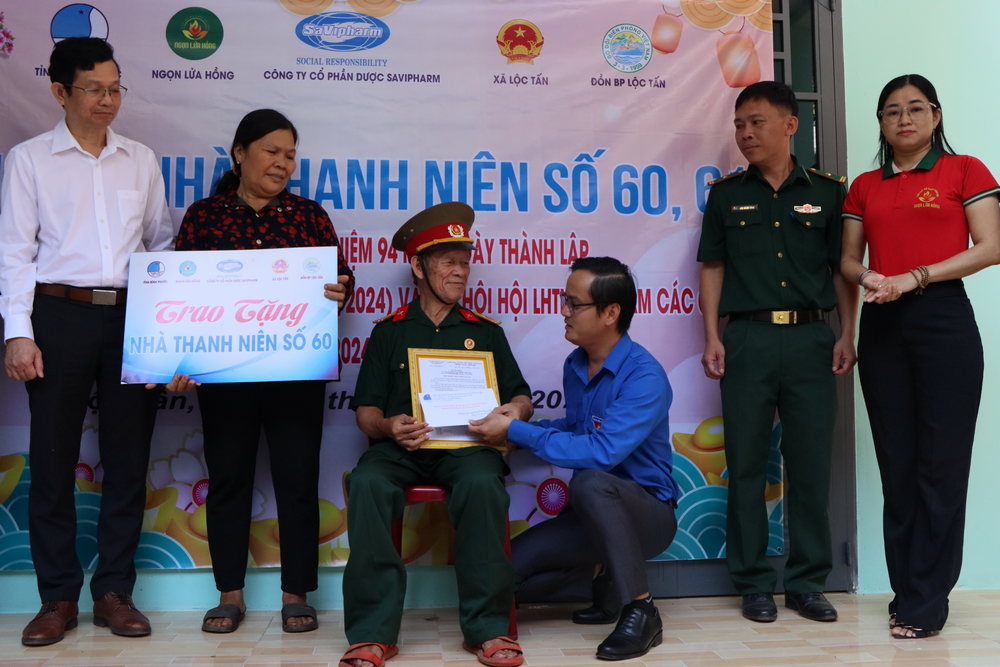 Lãnh đạo Tỉnh đoàn, Hội LHTN Việt Nam tỉnh Bình Phước và các doanh nghiệp trao tặng nhà thanh niên trong chiến dịch tình nguyện “Xuân biên giới” năm 2024.
