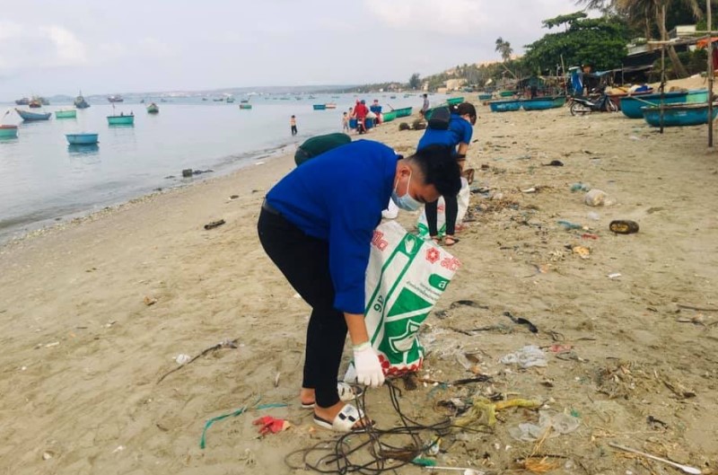 ĐVTN thực hiện làm sạch bãi biển