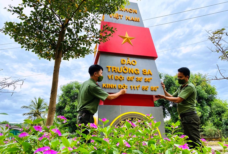 Thanh niên công an triển khai mô hình cột mốc Trường Sa tại xã Phan Tiến