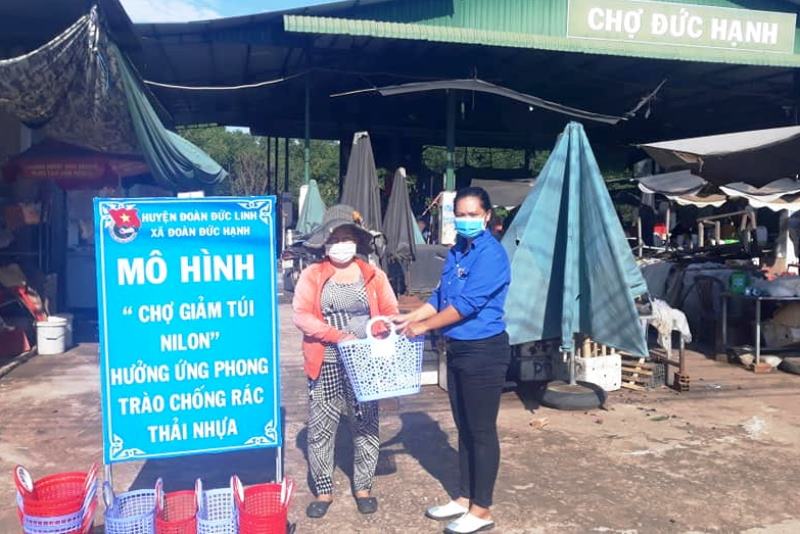 Đoàn viên thanh niên xã Đức Hạnh, huyện Đức Linh thực hiện mô hình Chợ dân sinh giảm thiểu rác thải nhựa