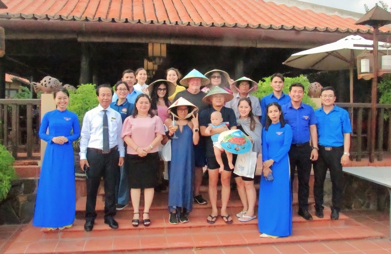 Đồng chí Trần Thị Thanh Hương - Phó Chủ tịch Uỷ ban MTTQ Việt Nam tỉnh và đồng chí Thái Thành Bi - Phó Bí thư Thường trực Tỉnh đoàn, Chủ tịch Hội LHTN Việt Nam tỉnh tặng quà cho du khách đang nghỉ dưỡng tại Phan Thiết