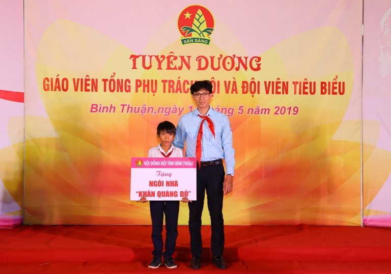 Ngoại ra, Hội đồng Đội tỉnh cũng đã trao tặng 20 suất học bổng cho các em thiếu nhi, đội viên nghèo có hoàn cảnh khó khăn phấn đấu học tập và 01 “Ngôi nhà Khăn Quàng đỏ” cho đội viên nghèo Lê Ngọc Luân, học sinh lớp 5A, Trường Tiểu học Thiện Nghiệp 2, thành phố Phan Thiết, tỉnh Bình Thuận. Ngôi nhà được xây dựng từ một phần kinh phí của phong trào Kế hoạch nhỏ do các liên đội trường tiểu học và THCS đóng góp.