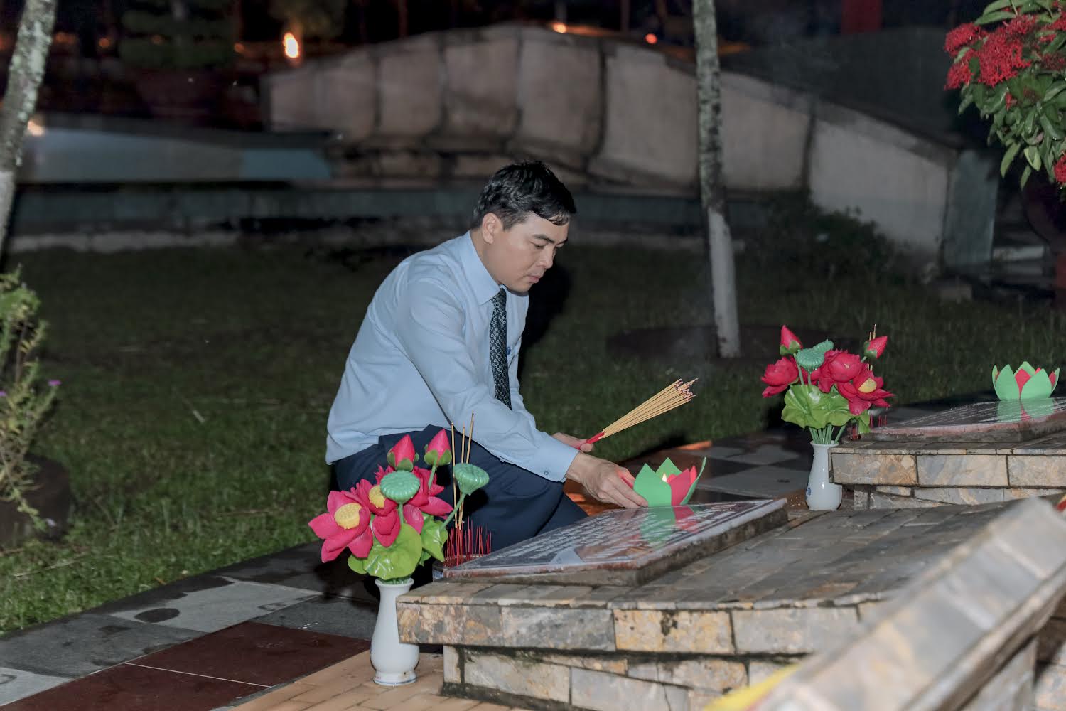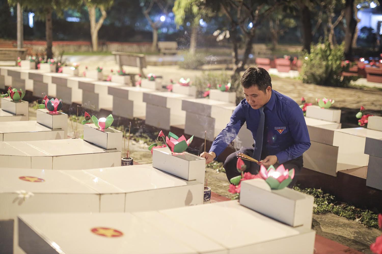Trong không khí trang nghiêm, xúc động, các đồng chí lãnh đạo tỉnh cùng đông đảo đoàn viên, thanh thiếu nhi, nhân dân địa phương đã dâng hoa, thắp hương và thắp lên những ngọn nến tri ân trên hơn 9000 phần mộ tại Nghĩa trang liệt sĩ.