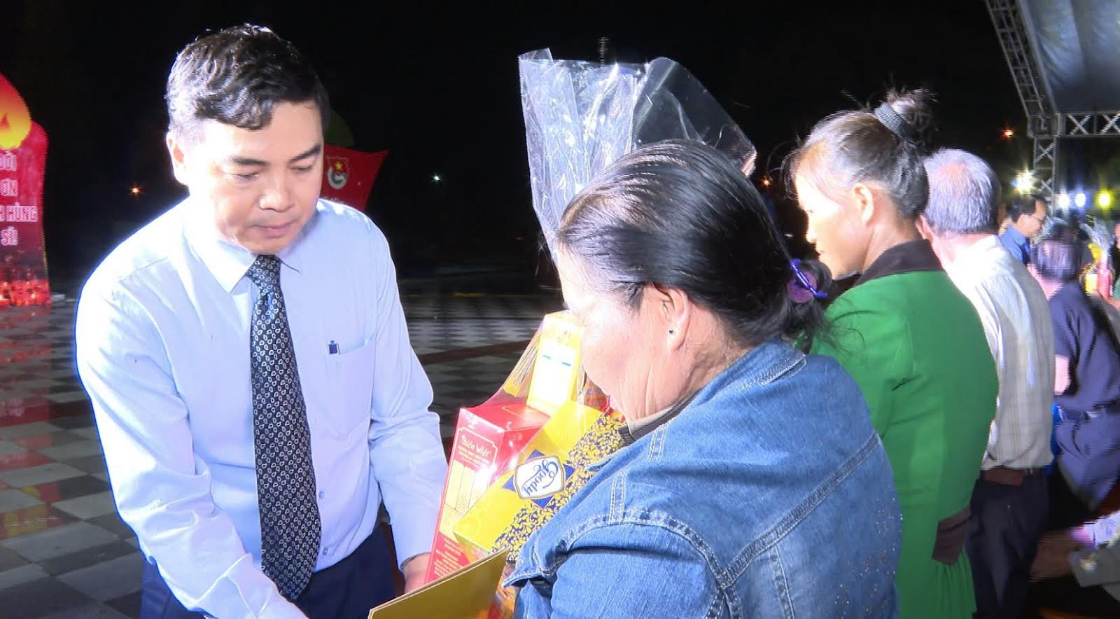 Đồng chí Nguyễn Hoài Anh - Uỷ viên dự khuyết BCH Trung ương Đảng, Bí thư Tỉnh uỷ, Chủ tịch Hội đồng Nhân dân tỉnh tặng quà cho các gia đình chính sách