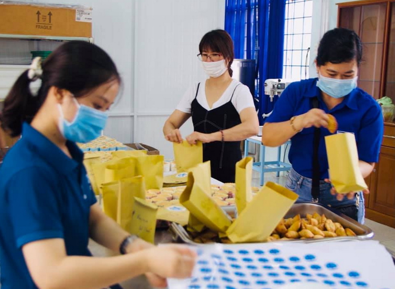 Đầu bếp áo xanh" của trường Cao đẳng Cộng đồng Bình Thuận làm bánh tặng khu cách ly