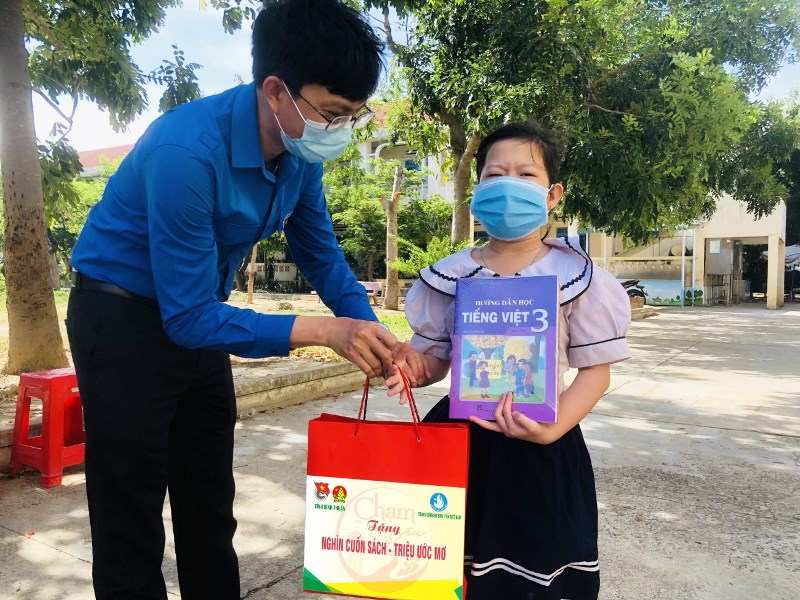 Theo đó, Tỉnh Đoàn đã trao tặng 1.200 bộ sách giáo khoa mới cho các em thiếu nhi khối tiểu học là người đồng bào dân tộc thiểu số, trẻ em nghèo và cận nghèo, hoàn cảnh khó khăn, mồ côi trong toàn tỉnh chuẩn bị bước vào năm học mới 2021 - 2022 với trị giá hơn 200 triệu đồng.