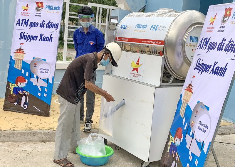 Chương trình “ATM gạo di động - Shipper xanh” được triển khai tại thành phố Phan Thiết. Bên cạnh phương thức người dân đến trực tiếp nhận gạo tại cây ATM gạo, điểm mới của chương trình “ATM gạo di động - Shipper xanh” lần này chính là đội hình “Shipper xanh” là những đoàn viên, thanh niên sẽ nhận gạo tại cây ATM gạo và sau đến trao tại các địa điểm là khu vực bị phong tỏa, các hộ gia đình có hoàn cảnh khó khăn, người lang thang cơ nhỡ, người khuyết tật, hộ nghèo và cận nghèo... bị ảnh hưởng bởi dịch bệnh Covid-19 trên đại bàn thành phố Phan Thiết.