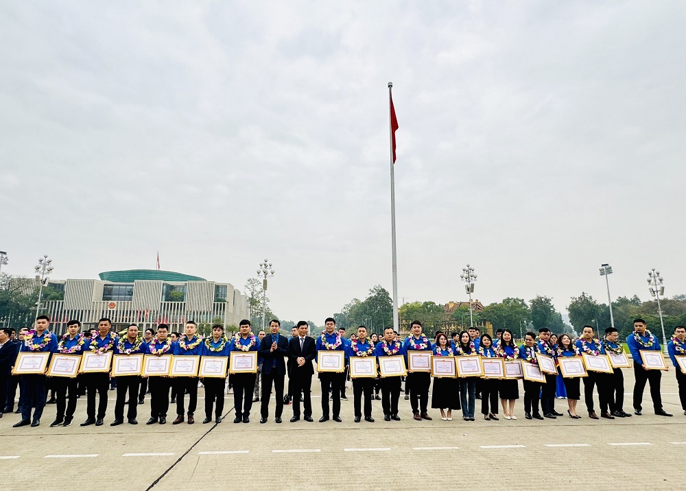 Đồng chí Ngô Văn Cương – Bí thư T.Ư Đoàn, Chủ nhiệm Uỷ ban Kiểm tra T.Ư Đoàn và đồng chí Lê Anh Tuấn – Thứ trưởng, Bí thư Đảng uỷ Bộ GTVT tặng Giấy khen tuyên dương các đảng viên trẻ tiêu biểu
