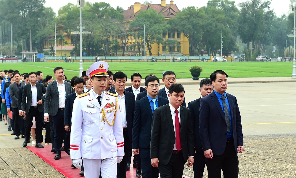 Các đồng chí lãnh đạo cùng đại biểu vào Lăng viếng Chủ tịch Hồ Chí Minh