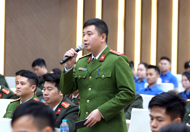 Đại úy Vũ Dương Minh, Phó Bí thư Đoàn Thanh niên Cục Cảnh sát quản lý hành chính về trật tự xã hội đặt câu hỏi đối với đồng chí Bí thư thứ nhất Trung ương Đoàn