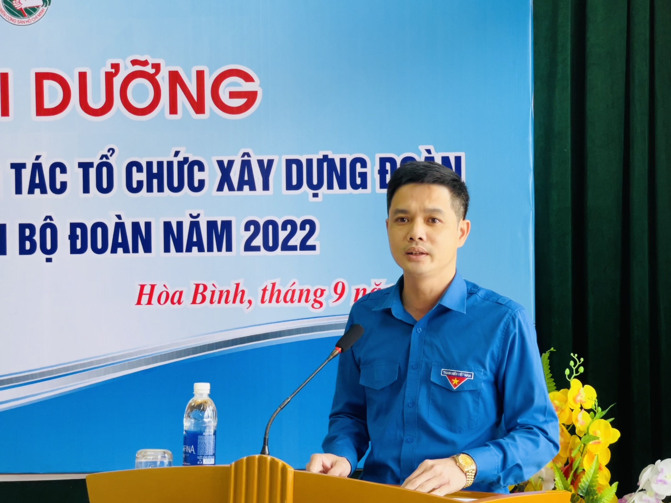 Đồng chí Hoàng Đức Minh - Phó Bí thư Tỉnh đoàn, Chủ nhiệm UBKT Tỉnh đoàn, Chủ tịch Hội đồng Đội tỉnh phát biểu khai giảng lớp bồi dưỡng.
