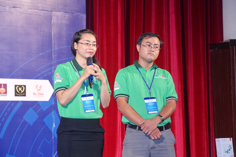 Tác giả Nguyễn Ngọc Hương thuyết trình Dự án "Bột rau sấy lạnh" trước Hội đồng giám khảo |