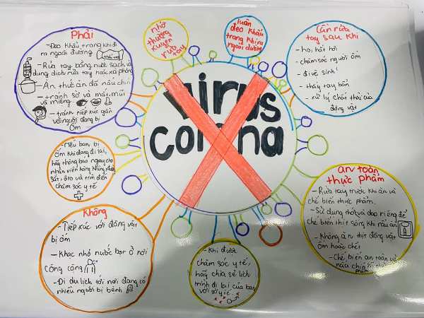 - Bằng sự sáng tạo không ngừng các con hãy tạo ra những câu khẩu hiệu, sơ đồ tư duy hoặc những bức tranh tuyên truyền về dịch bệnh Corona và các biện pháp phòng ngừa để kiến thức hữu ích được lan toả đến tất cả mọi người nhé!