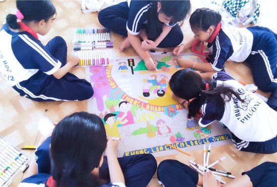 Các “Họa sĩ nhí” tham gia thi vẽ tranh cá nhân và tập thể